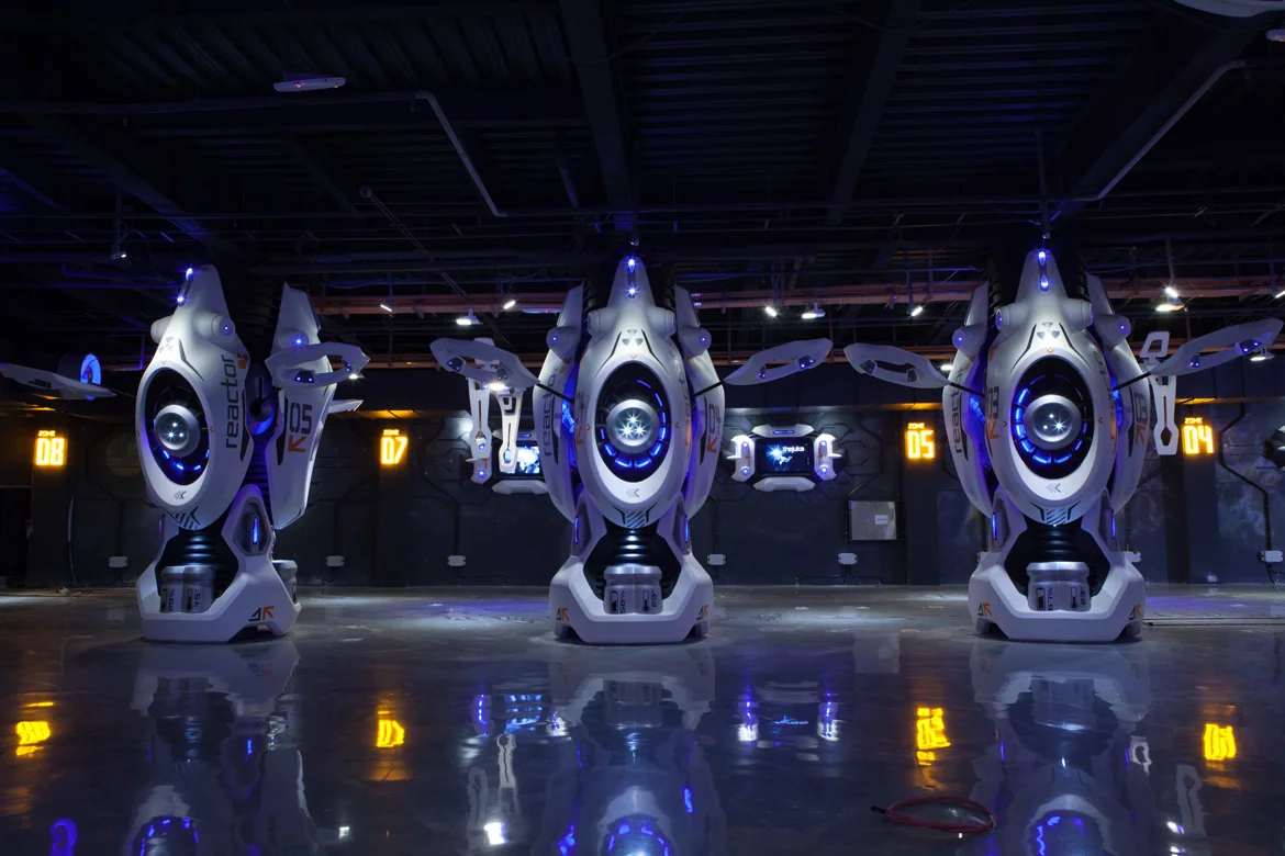 Sci-Fi themed FRP shells hide the actual structural elements of the interior space.